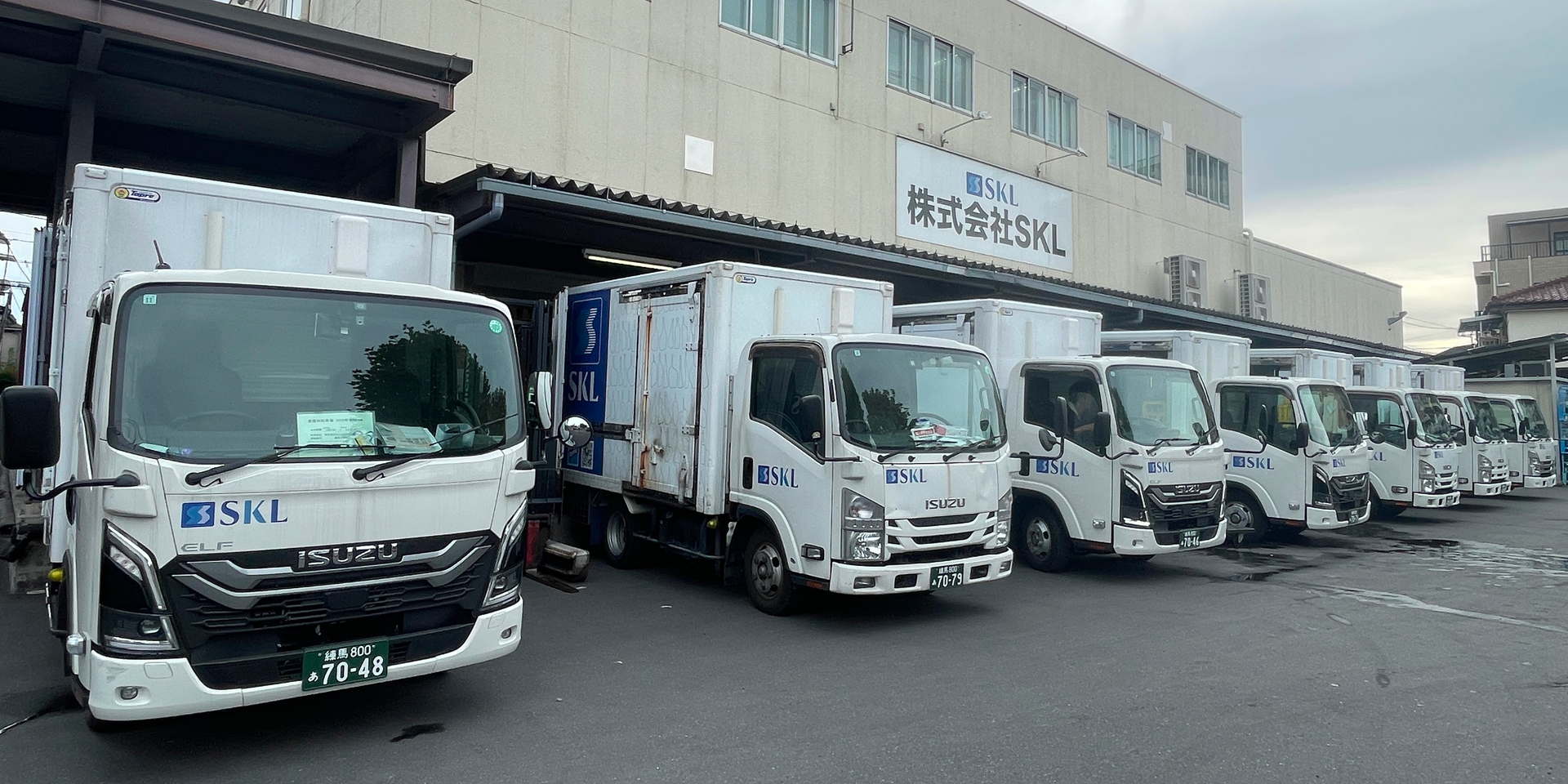リーファー車とは、外部の温度に左右されずに庫内の温度を調整できる機能を持つ車。SKLのトラックはすべてリーファー車です。お客様にに届くまで温度管理を怠りません。